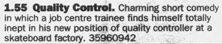Firstly, Quality Control was broadcast many more times than I thought it was! I thought it was only broadcast four times between 1996 and 1998, so imagine my surprise when I did some digging and found it had actually broadcast eleven times between 1996 and 1999. Oops!