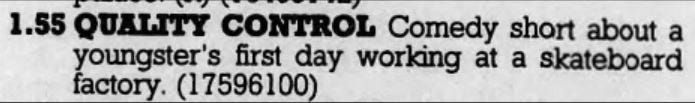 I'm not sure. At first blush, Quality Control doesn't seem to have been included in a larger broadcast of shorts like Bite and Spaces had been (Bite was shown on the program Don't Look Down on STV, and Spaces was shown on STV as a part of First Reels.) In its broadcast listings, Quality Control is always listed on its own.